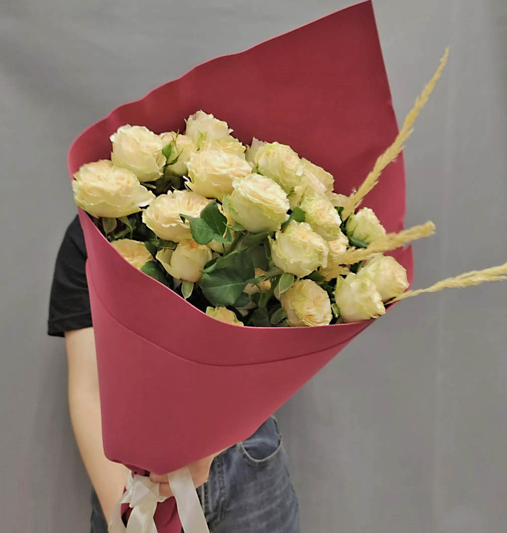 Букет из кустовых пионовидных роз кремового цвета арт. 47529