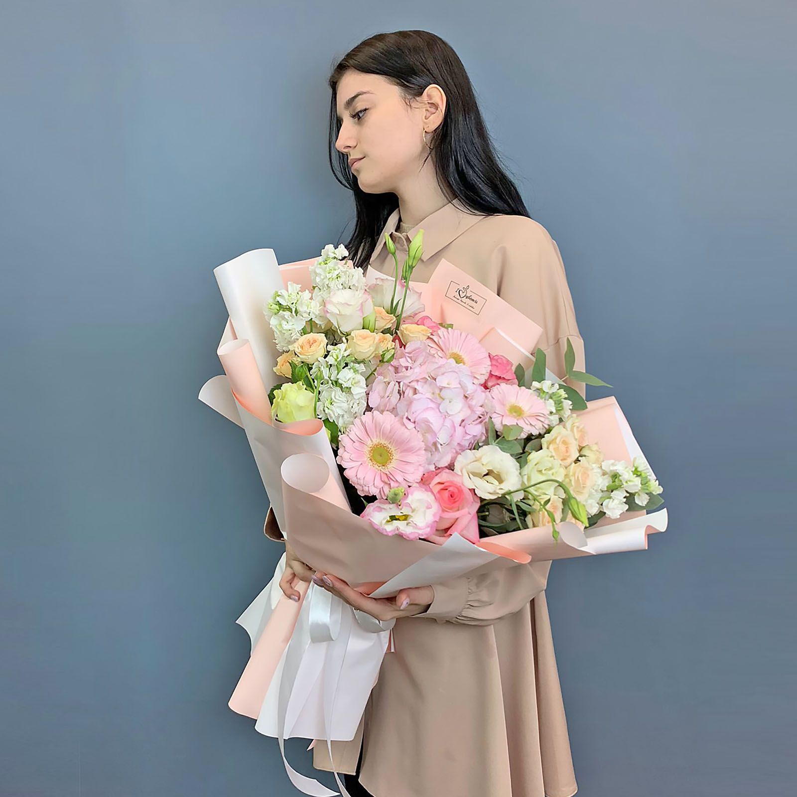 Такой большой букет легко представить в руках мамы, любимой, девушки, сестры или коллеги - он эффектно подсвечивает значимость момента и создаёт ощущение яркого события. Его выбирают для юбилея, важного праздника или просто тогда, когда хочется выразить свои чувства без слов. Цветы здесь собраны так, чтобы выглядеть нежно, но уверенно, сохраняя гармонию оттенков и фактур.