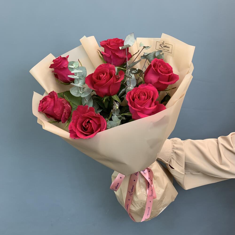 Букет из Кенийских розовых роз с эвкалиптом арт. 28447-Э