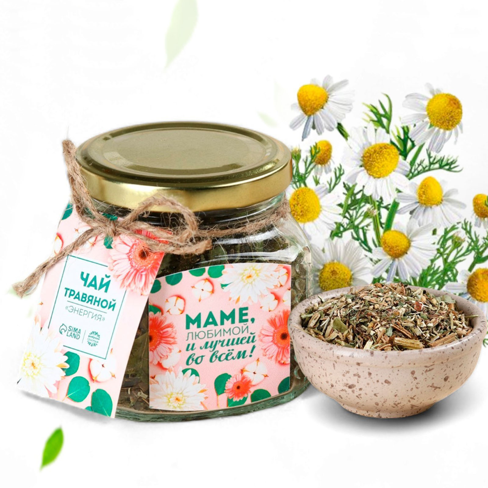 2. Чай травяной в стеклянной банке. Состав: ежевика, репешок, фундук, ромашка, чабан-чай, шелковица, шиповник, мята, роза.